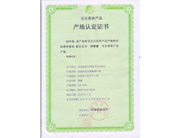 产地认定证书